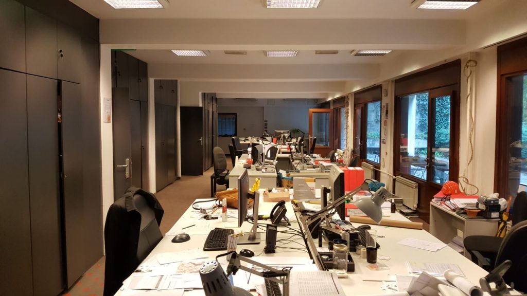 Pojavljuje se to jutro pred put vanjski suradnik koji izrađuje troškovnik kako bi nam predao svoj uvezani dio. Direktor u tom trenutku uzima troškovnik kako bi provjerio je li sve ondje. Međutim, nedostaje cijelo jedno poglavlje (dio hotela) i naravno nastaje totalni kaos i povišeni tonovi na sve strane. Svi se uključuju u izradu tog dijela troškovnika te pokušavaju smiriti tenzije. Kolega kojeg poznajem od 1. godine fakulteta i ja smo u fazi povlačenja zadnjih linija i ispravljanja zadnjih grafičkih nedostataka u projektu te se pripremamo za printanje i uvezivanje, za koje smo svjesni da će trajati cijelu noć.